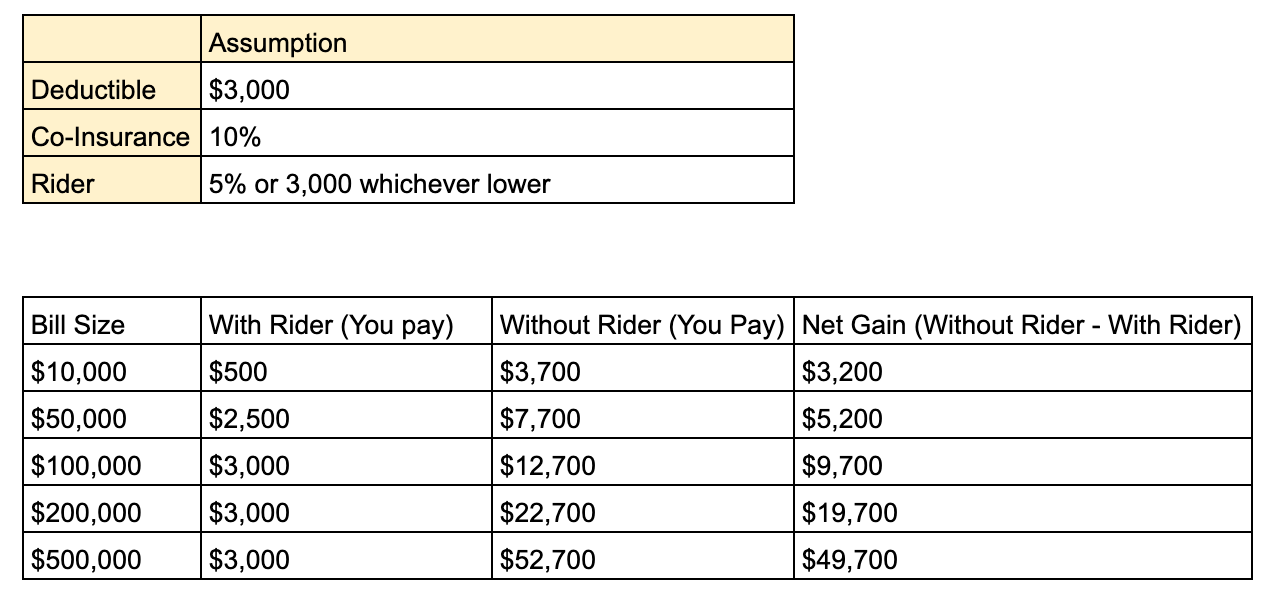 But how many times must we experience $100,000 bill to justify having this rider in our lifetime?