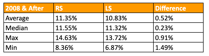 As I was looking at the output, i notice the return (post 2008) looks quite different from (2007 and before)